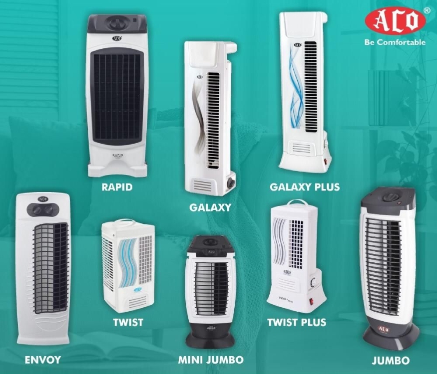 Aco make Low Ceiling fans, Tower fans, Table Fans, Cassette Fans, Exhaust Fans for domestic use.